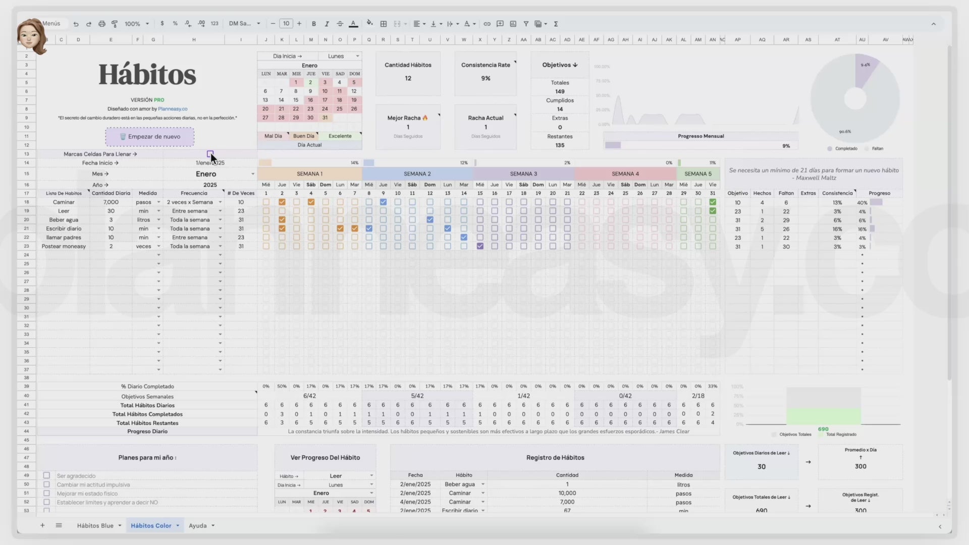 Construye los hábitos que tanto deseas. Accede a la plantilla premium usada por mas de 10k personas, que te permitirá tener constancia y lograr tus objetivos de manera fácil.